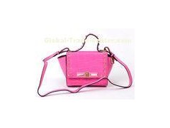 Small Pink Leather Shoulder Bag for Women , Croco Pattern Flap