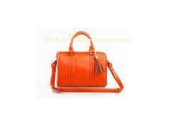 Smooth Orange Ladies Leather Handbags Small Duffle Bag with Cotton Lining