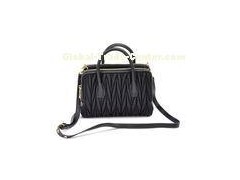 Soft Nylon with new small, pressed matelassé motif, genuine goat leather handles and shoulder strap