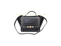 Ladies Black Calf / Crocodile Leather Handbags with Pyramid Studs