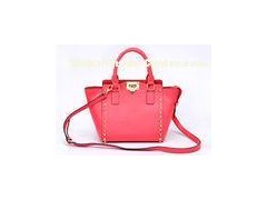 Ladies leather hand bag in 2014 most popular brand design, soft and smooth genuine leather and high quality studs and turnlock, golden feet at the bottom, rolled tote handles on the top and extended zip top secures at side tab.